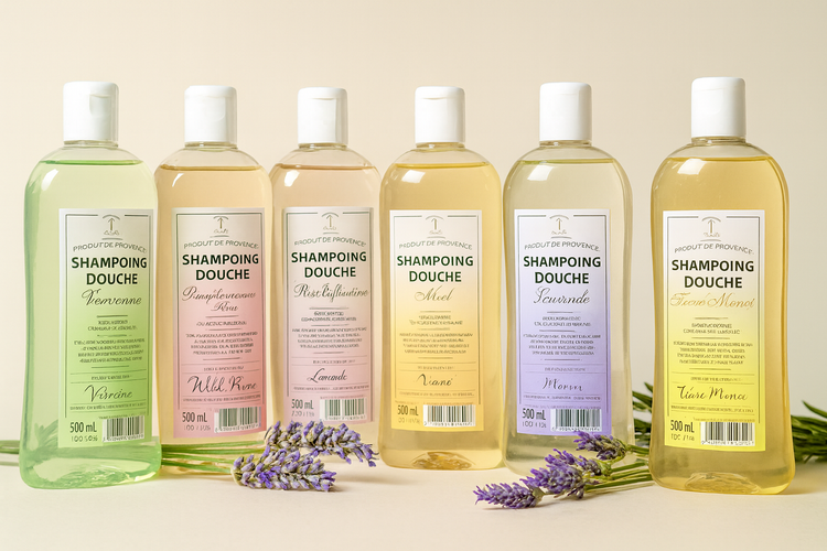 Immerse yourself in the authentic softness of Provence with our collection of artisanal shower shampoos.